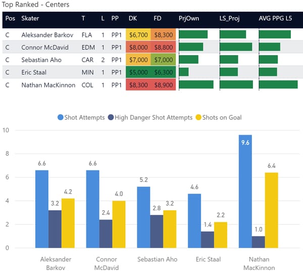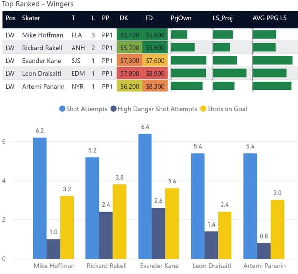 If you take anything away from this, keep in mind that hockey is a high-variance sport. The top ranked player in each category could be a great play or be a dud tonight. Going all in on any player probably isn't a great move.