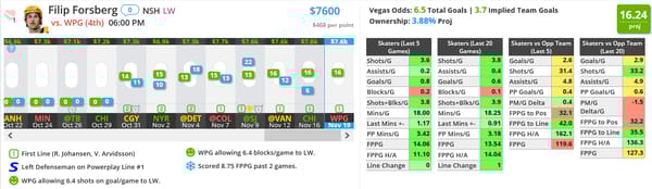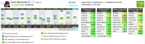 Outside of his last game, Kuznetsov has been hot and I'm going to continue to play him at that price. On these smaller slates, I've started to focus more on powerplay correlation, so I don't mind playing Kuznetsov with Ovechkin or Backstrom and getting exposure to both even strength lines.