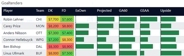 If you take anything away from this, keep in mind that hockey is a high-variance sport. The top ranked player in each category could be a great play or be a dud tonight. Going all in on any player probably isn't a great move.