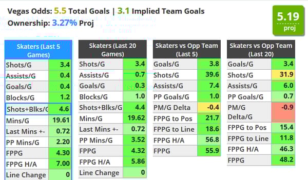 His price has been increasing on DraftKings but continues to hold on FanDuel. He's best on the slate for shots + blocks over the past 5 games and though he doesn't have a good matchup tonight, I'm going to continue to spend up for him.