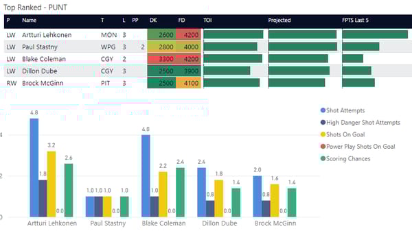 If you take anything away from this, keep in mind that hockey is a high-variance sport. The top-ranked player in each category could be a great play or be a dud tonight. Going all-in on any player probably isn't a great move.