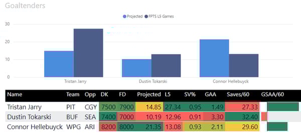 My preference is to correlate goalie with one of my stacks, but my favorite tonight is: