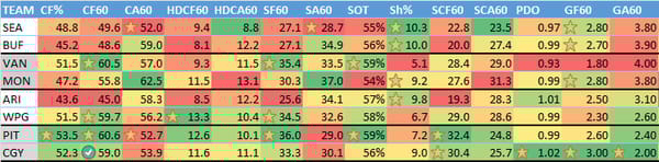I mentioned this in chat, but I often use this to look for mismatches (teams that give up a lot of shots facing teams that take a lot of shots) and spots where both teams have sub 50% CF%. So if you're looking for "sneaky" stacks, that's where I start.