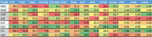I mentioned this in chat, but I often use this to look for mismatches (teams that give up a lot of shots facing teams that take a lot of shots) and spots where both teams have sub 50% CF%. So if you're looking for "sneaky" stacks, that's where I start.
