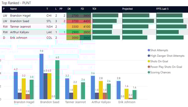 If you take anything away from this, keep in mind that hockey is a high-variance sport. The top-ranked player in each category could be a great play or be a dud tonight. Going all-in on any player probably isn't a great move.
