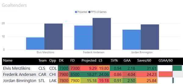 My preference is to correlate goalie with one of my stacks, but my favorite tonight is: