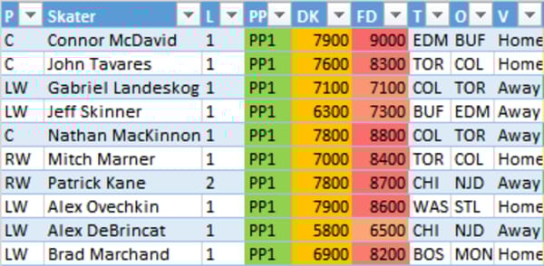 Like last week, we'll start with my personal top ten ranked skaters on the slate. This is my own sauce, but based on recent performance and matchup, but my purpose in sharing this is to point out some of the obvious plays on the night so that I can bring you all some other good plays to put in your lineups.