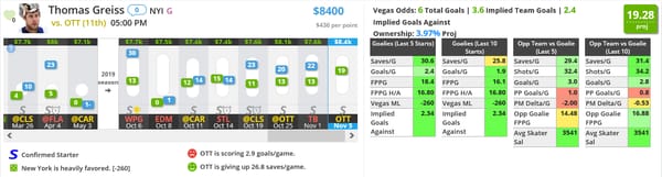 Thomas Greiss - NYI (DK: $8400, FD: $8100)