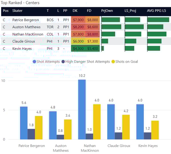 If you take anything away from this, keep in mind that hockey is a high-variance sport. The top ranked player in each category could be a great play or be a dud tonight. Going all in on any player probably isn't a great move.