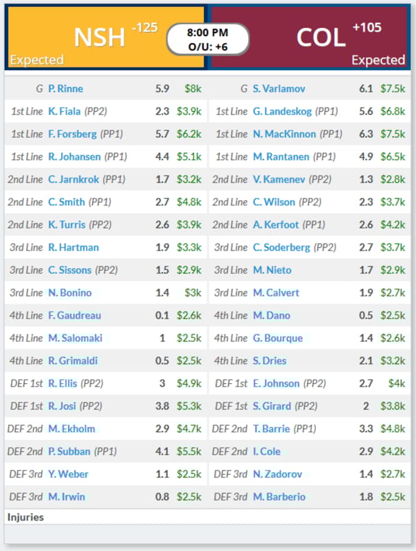 Both teams have been scoring goals. Nashville has been scoring 3.68 over the past 10 games while Colorado has been scoring 3.44. However, Nashville is the best on the slate in terms of goals allowed, with only 2.19 over the past 10 games. Despite this, I think Colorado makes for a good stack in GPPs. The top line has been somewhat matchup proof this season and if you want to get wild, you can dip to that second line which will allow you to fit any other top line on the slate.