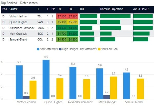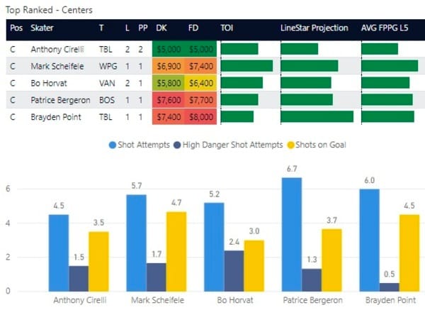 If you take anything away from this, keep in mind that hockey is a high-variance sport. The top ranked player in each category could be a great play or be a dud tonight. Going all in on any player probably isn't a great move.
