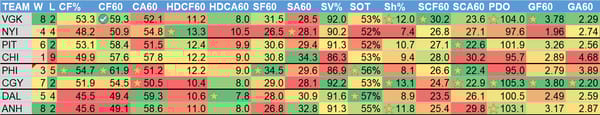 Patrick Kane has been a bright spot for Chicago lately with a 62 CF%, 7.2 shot attempts and 4.4 shots on net.
