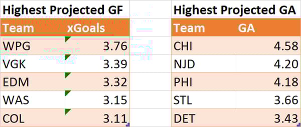 Need help narrowing it down? Here's my top projected goals for and goals allowed for the slate tonight: