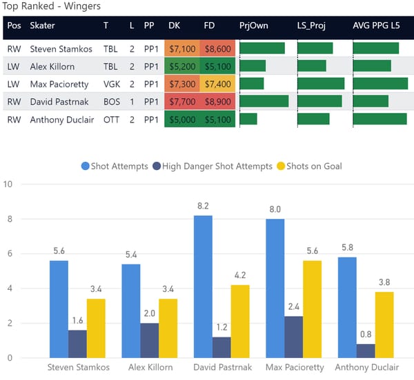 If you take anything away from this, keep in mind that hockey is a high-variance sport. The top ranked player in each category could be a great play or be a dud tonight. Going all in on any player probably isn't a great move.