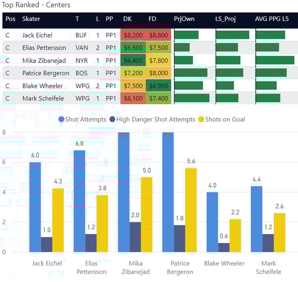 If you take anything away from this, keep in mind that hockey is a high-variance sport. The top ranked player in each category could be a great play or be a dud tonight. Going all in on any player probably isn't a great move.