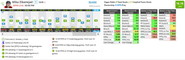 You get great shot volume for the price in Zibanejad tonight and he has a great matchup against a Flyers team that is giving up 3.4 goals a game over their last 5 games.
