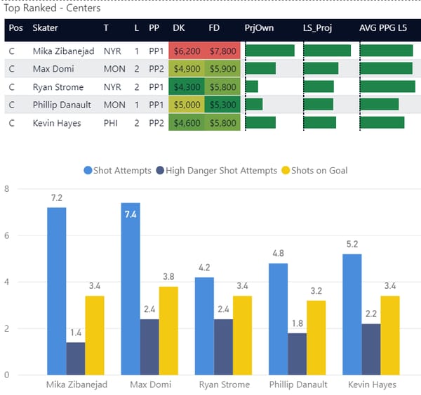 If you take anything away from this, keep in mind that hockey is a high-variance sport. The top ranked player in each category could be a great play or be a dud tonight. Going all in on any player probably isn't a great move.