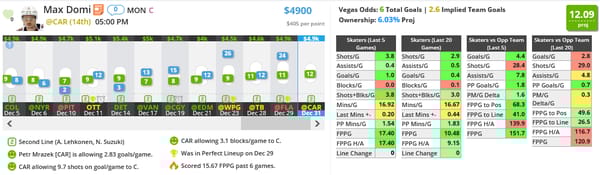 I love Domi's price and recent shot volume, which has also been trending up when comparing his last 5 games to his last 20 games.