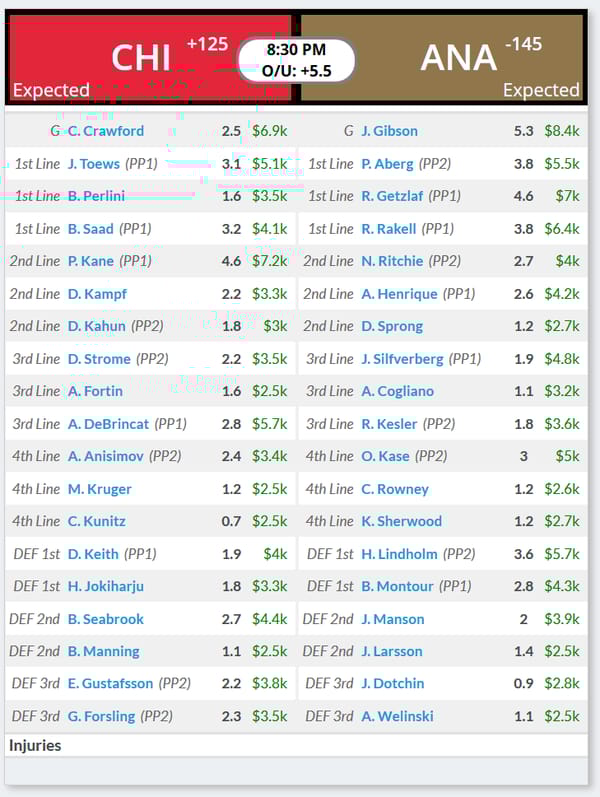 CHI: Perlini-Toews-Saad (DK: $12.7K, FD: $15.8K)
