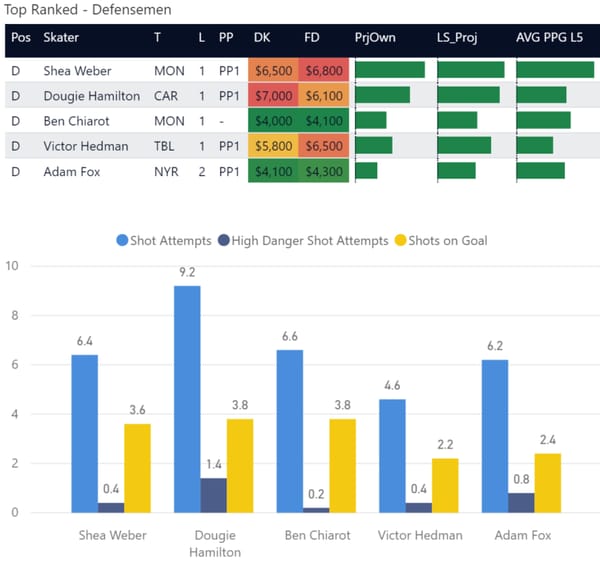 If you take anything away from this, keep in mind that hockey is a high-variance sport. The top ranked player in each category could be a great play or be a dud tonight. Going all in on any player probably isn't a great move.