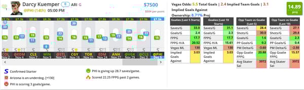 Darcy Kuemper - ARI (DK: $7500, FD: $8600)