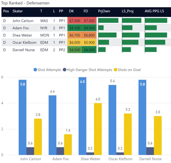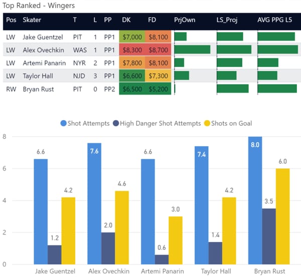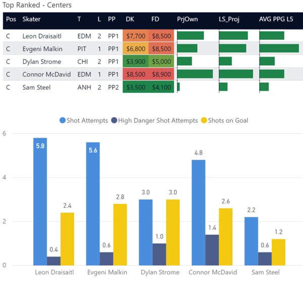 If you take anything away from this, keep in mind that hockey is a high-variance sport. The top ranked player in each category could be a great play or be a dud tonight. Going all in on any player probably isn't a great move.