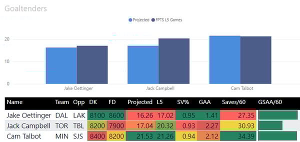 My preference is to correlate goalie with one of my stacks, but my favorite tonight is: