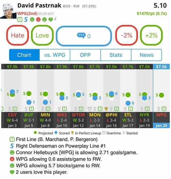 David Pastrnak: BOS - W (DK: $7.5K, FD: $8.1K)