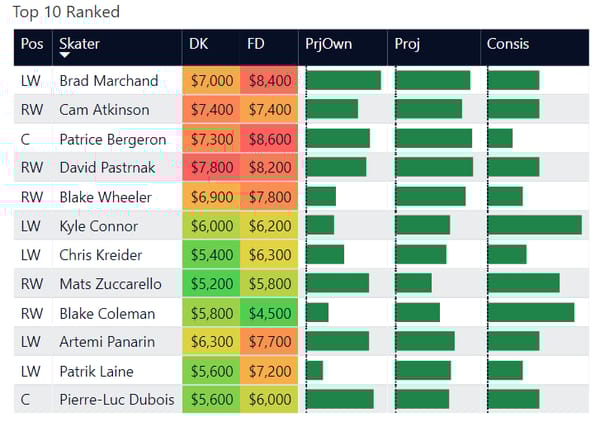 But let's start with my overall rankings on skaters for the slate.
