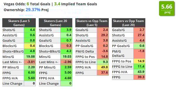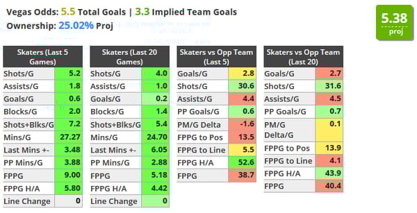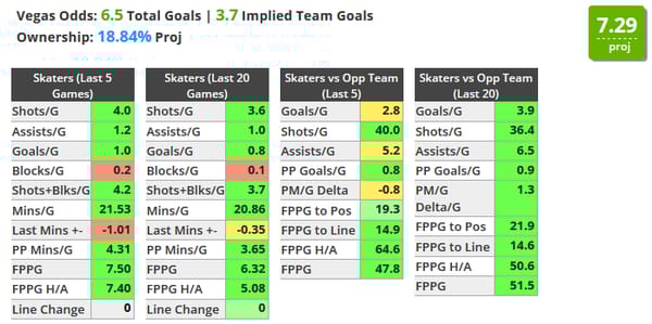 Second to Brent Burns on the slate in terms of shot attempts over his last 5 (7.3) and is averaging 3.5 shots on net in over 23 minutes of ice time over his last 5 games.