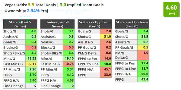 If you want to pretend that Karlsson and Burns aren't on the slate, Letang becomes your best option. Florida has been averaging 3.15 goals allowed a game over their last 10 games. My only real issue with Letang tonight is he isn't shooting the puck as much as some other options. But I do like that he's averaging over 25 minutes a game and gets top powerplay unit minutes.