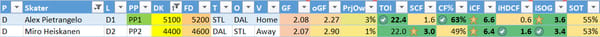For those of you who aren’t familiar with hockey, “biscuit in the basket” is a term for scoring a goal. Here I’m going to give a center, wing, and defensemen for the top and value pricing tiers that I think has a good chance to score a goal. Remember - I gave some tips last week on numbers that I look for, and these players check most (if not all my boxes):