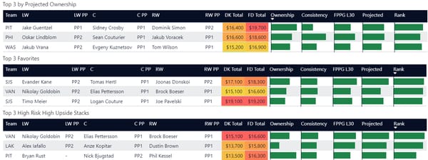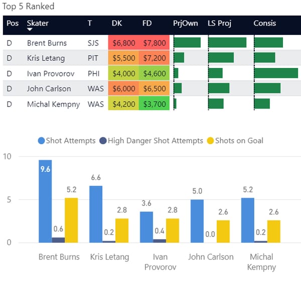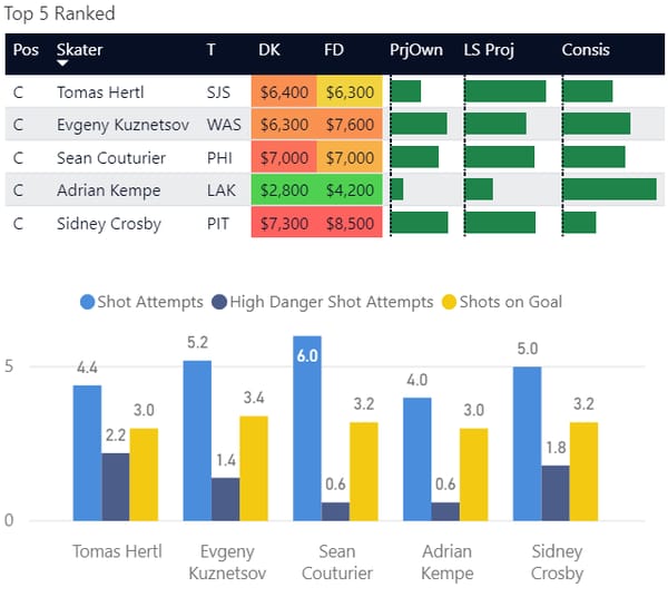 If you take anything away from this, keep in mind that hockey is a high-variance sport. The top ranked player in each category could be a great play or be a dud tonight. Going all in on any player probably isn't a great move.