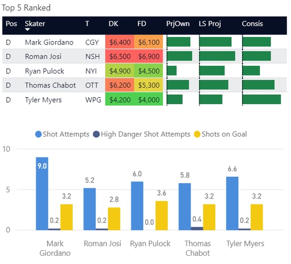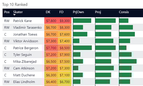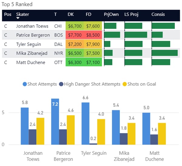 If you take anything away from this, keep in mind that hockey is a high-variance sport. The top ranked player in each category could be a great play or be a dud tonight. Going all in on any player probably isn't a great move.