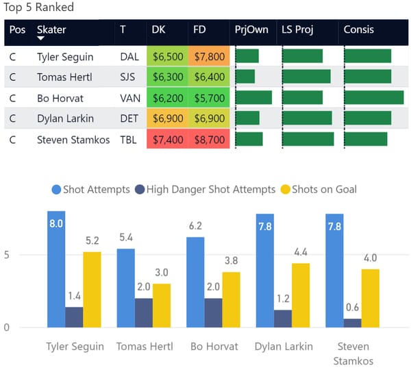 If you take anything away from this, keep in mind that hockey is a high-variance sport. The top ranked player in each category could be a great play or be a dud tonight. Going all in on any player probably isn't a great move.