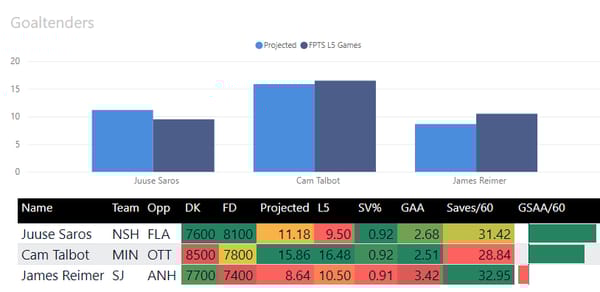 My preference is to correlate goalie with one of my stacks, but my favorite tonight is: