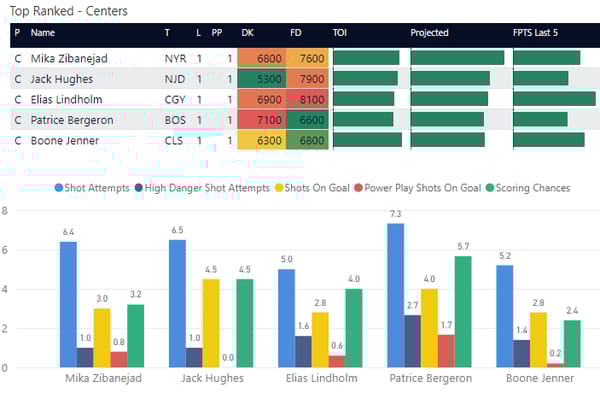 If you take anything away from this, keep in mind that hockey is a high-variance sport. The top-ranked player in each category could be a great play or be a dud tonight. Going all-in on any player probably isn't a great move.