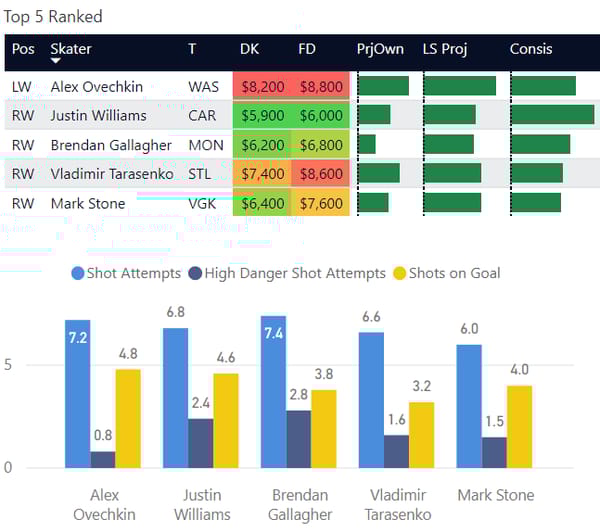 Here are my top-ranked skaters overall on the slate. This is based on recent performance and matchup.