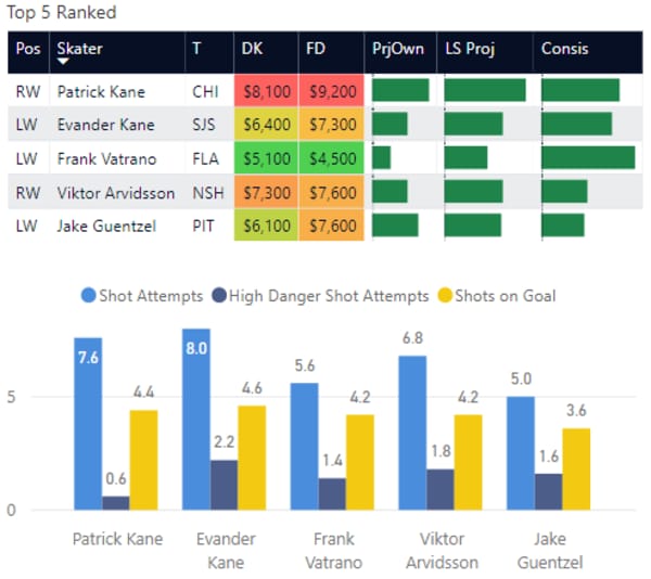 If you take anything away from this, keep in mind that hockey is a high-variance sport. The top ranked player in each category could be a great play or be a dud tonight. Going all in on any player probably isn't a great move.
