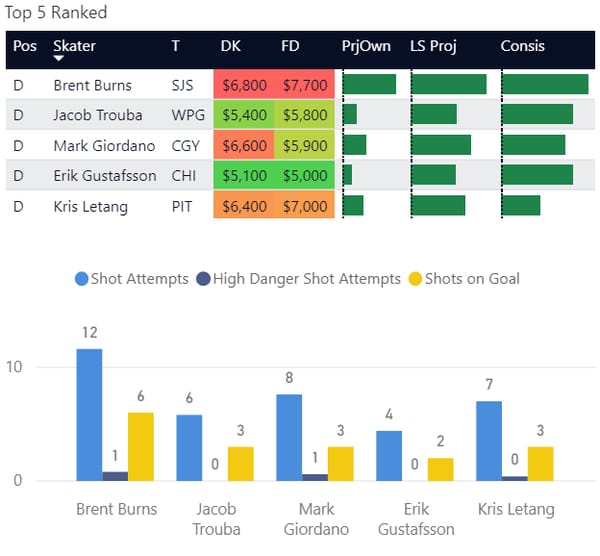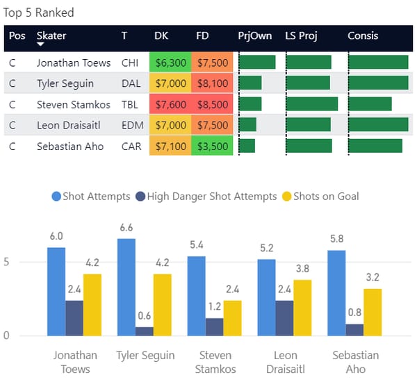 If you take anything away from this, keep in mind that hockey is a high-variance sport. The top ranked player in each category could be a great play or be a dud tonight. Going all in on any player probably isn't a great move.