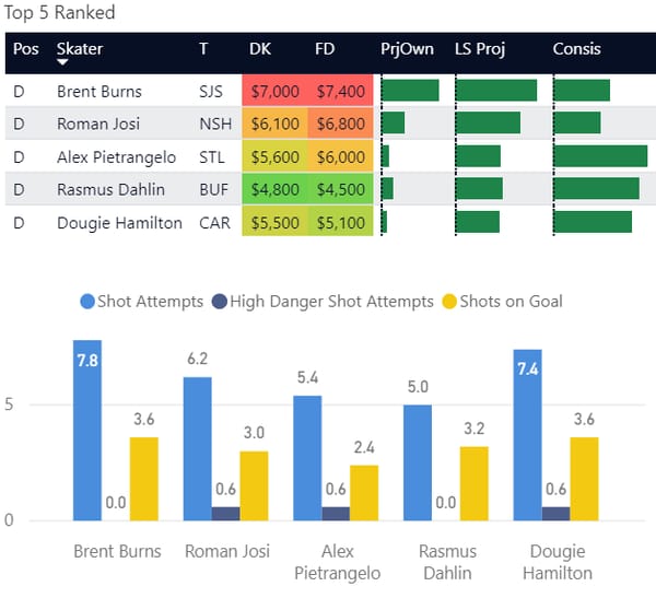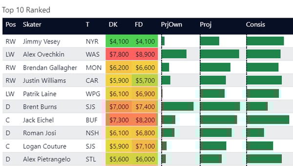 Here are my top-ranked skaters overall on the slate. This is based on recent performance and matchup.