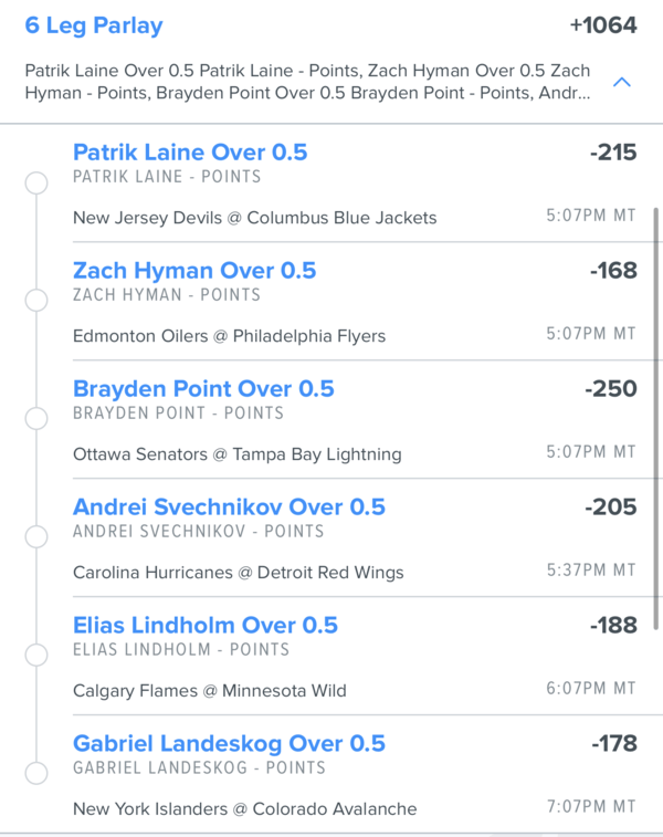 I've got a 6-leg parlay for tonight. Feel free to play singles or take a few and make your own parlay.