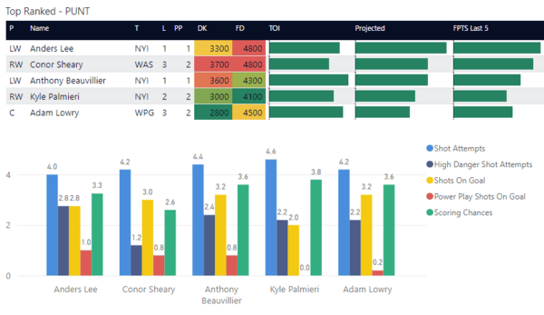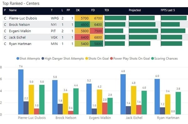 If you take anything away from this, keep in mind that hockey is a high-variance sport. The top-ranked player in each category could be a great play or be a dud tonight. Going all-in on any player probably isn't a great move.