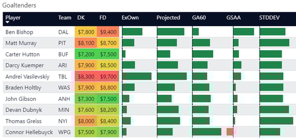 Mostly, I'm trying to give a little more transparency into who I like for the night and who is worth considering. I don't believe in locks or must plays. So with goalies, I usually hover around the top spots and split exposure. In baseball, I'll often swap pitchers if I get a lineup with all the hitters I like. Same applies with goalies. If you build a lineup and like your skaters, but aren't certain on goalies, don't be afraid to create a second lineup with your second favorite goalie.