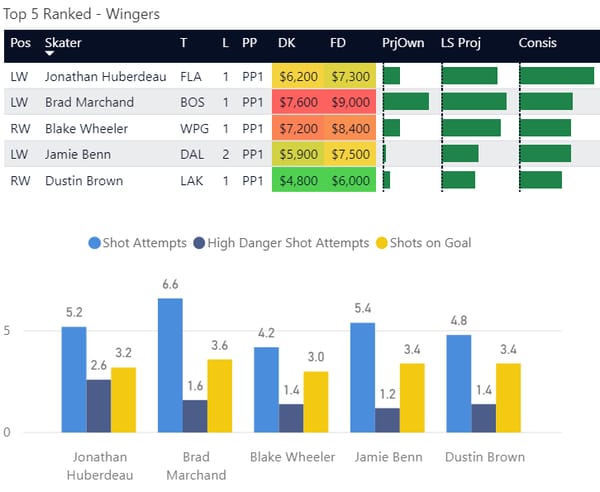 Next, let's look at wingers - and like I mentioned, NHL is all about correlation. When building your lineups, always think of who you can pair together. If there's a center that you love, it's probably a good idea to find a winger or defenseman to pair him with.