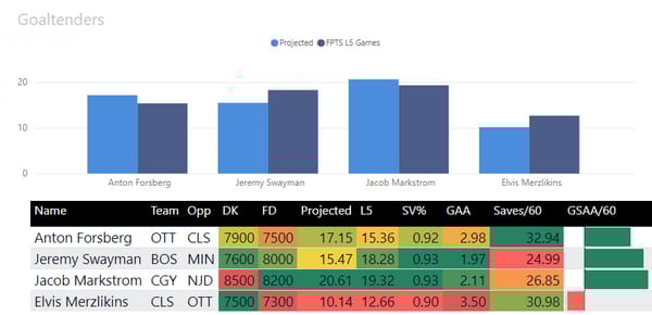 My preference is to correlate goalie with one of my stacks, but my favorite tonight is: