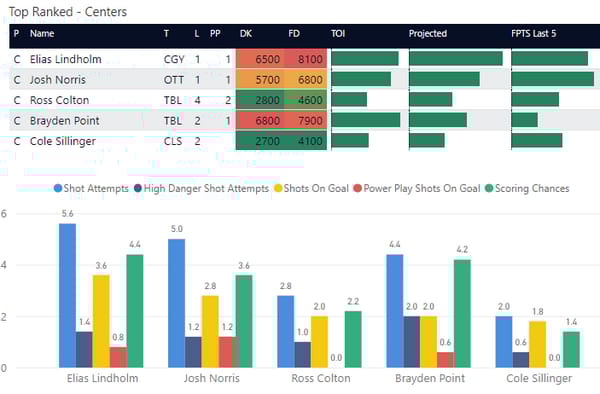 If you take anything away from this, keep in mind that hockey is a high-variance sport. The top-ranked player in each category could be a great play or be a dud tonight. Going all-in on any player probably isn't a great move.