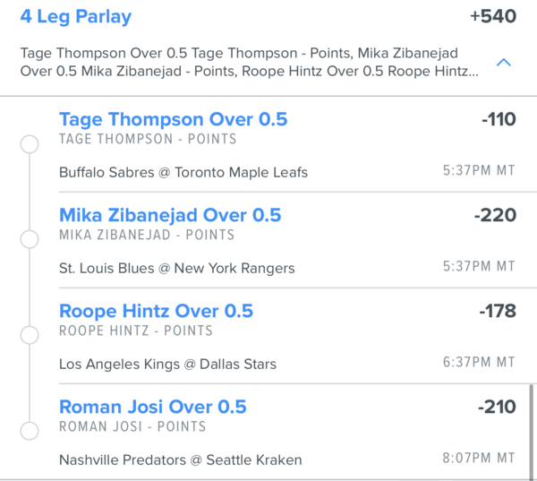 I've got a 4-leg parlay for tonight. Feel free to play singles or take a few and make your own parlay.