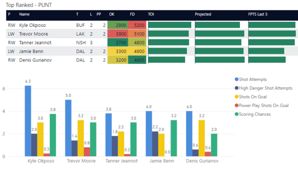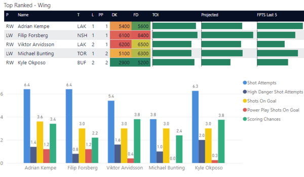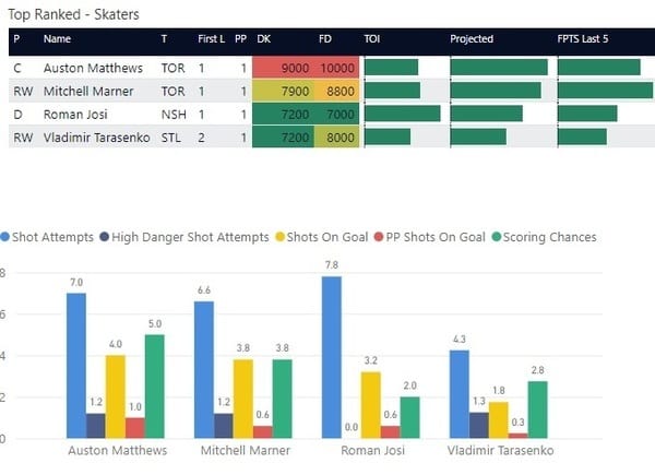 If you take anything away from this, keep in mind that hockey is a high-variance sport. The top-ranked player in each category could be a great play or be a dud tonight. Going all-in on any player probably isn't a great move.