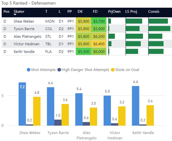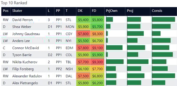 Here are my top-ranked skaters overall on the slate. This is based on recent performance and matchup.